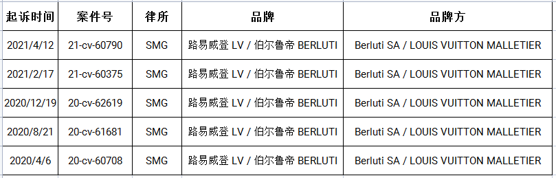 今天小编带大家来盘点一下各大知名品牌包包的侵权案件,给大家敲个警钟,各卖家要以此为戒,尽快下架相关的品牌产品。品牌:路易威登LV/伯尔鲁帝BERLUTILV的老花图案很有名,Berluti主要是文字商标。案件参数:品牌方:BerlutiSA/LOUISVUITTONMALLETIER起诉类型:商标代理律所:SMG(STEPHENM.GAFFIGAN,P.A.)–佛罗里达–美国历史发案情况:品牌介绍