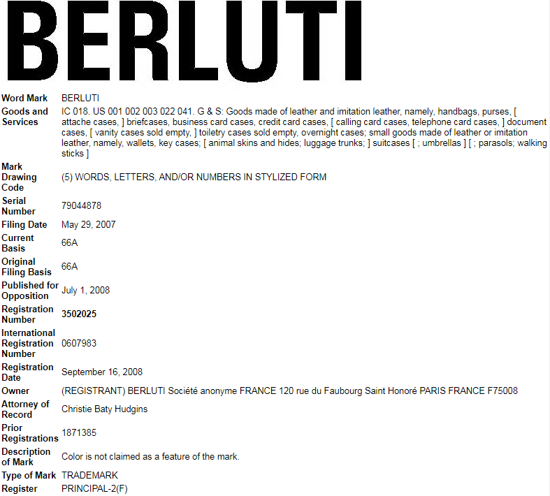 品牌方:Berluti SA / LOUIS VUITTON MALLETIER