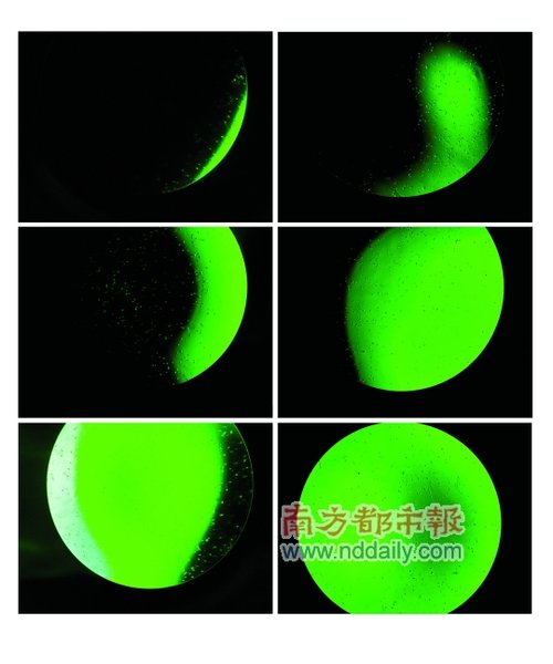 2011年11月30日,南方医院生殖医学中心IVF(胚胎)实验室,显微操作仪下的卵胞浆内单精子注射(ICSI)流程:精子被针管捕获后,注射进卵细胞中,48小时后便分裂为4细胞的胚胎。