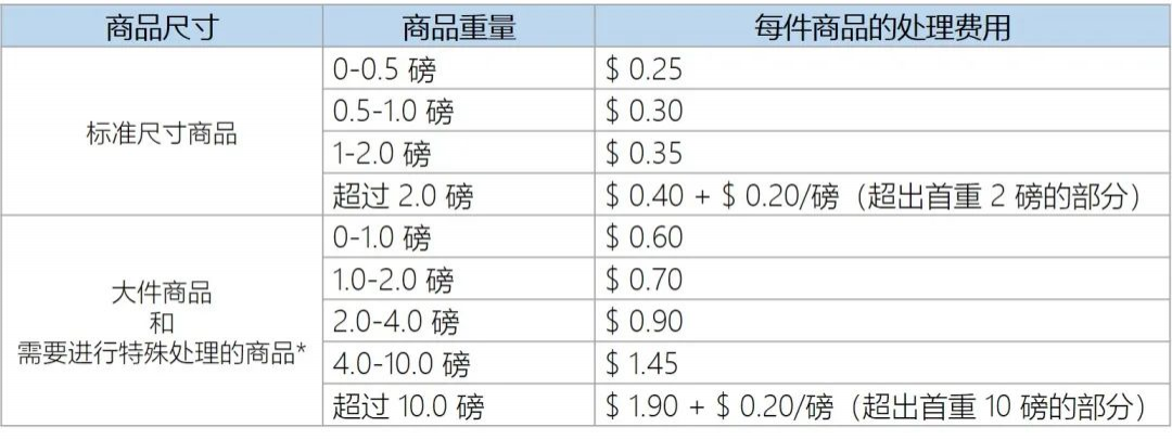 ▲ 商品处理费:按件计算,每件商品的具体费用取决于商品尺寸和重量。