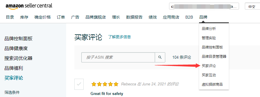 进入卖家后"品牌" - "买家评论"