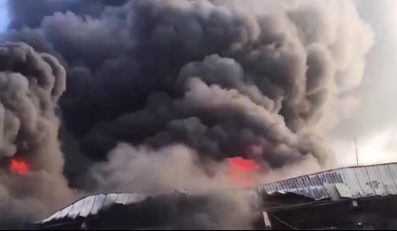 山东省消防救援总队报告称:起火的物流仓库为单层钢结构,总建筑面积约8000平方米,过火面积约900平方米,起火物主要为橡胶、聚乙烯颗粒,燃烧后产生较大浓烟!