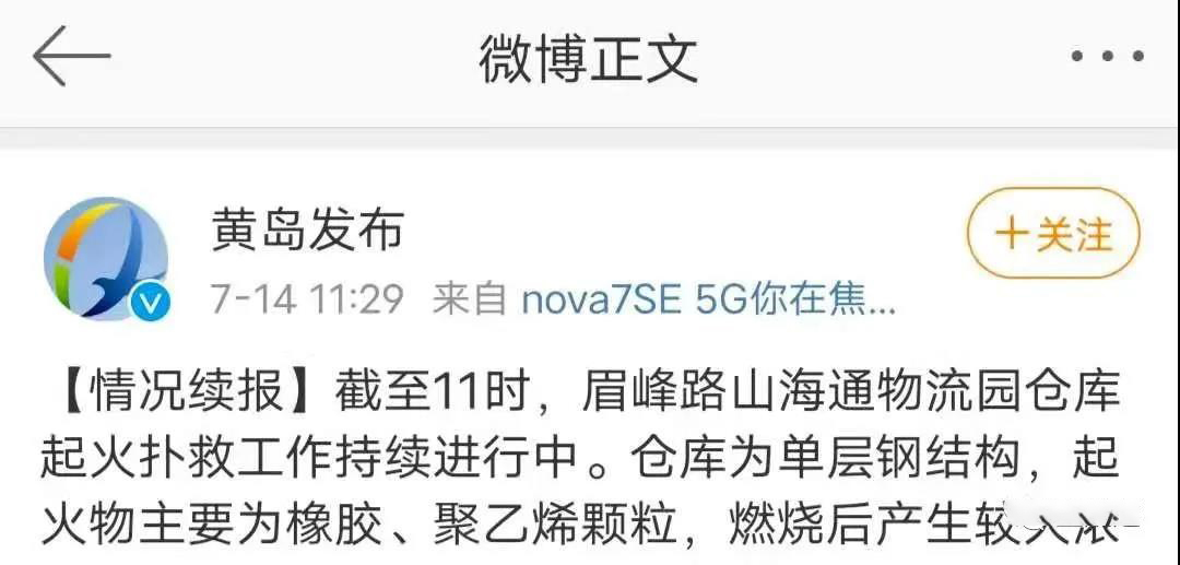 三伏已到、天干物燥防火防盗防危险品据小编最新获悉:7月14日早上5时24分,青岛市莫斯科路35号一家名为山海通物流园的大型仓库突发火灾!起火现场位于青岛仓库密集的前湾综合保税区,离青岛港较近!▲事故现场火光冲天山东省消防救援总队报告称:起火的物流仓库为单层钢结构,总建筑面积约8000平方米,过火面积约900平方米,起火物主要为橡胶、聚乙烯颗粒,燃烧后产生较大浓烟!▲起火仓库位置图,位于青岛港附近仓