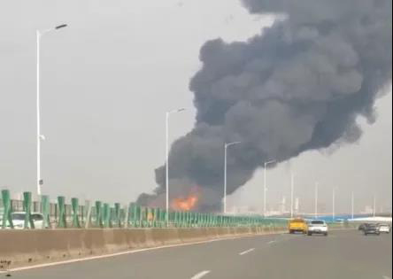 有网友反馈,这起发生在青岛港附近的大火事故,已经导致"通往四期的路已全部封闭,去四期落箱的货柜暂时无法完成落箱"!
