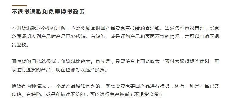 这个情况其实我们很早之前就已经和大家讲过了,在3月份亚马逊宣布退货政策进行更新,增加了自配送预付费退货政策,以及不退货退款和免费换货政策。