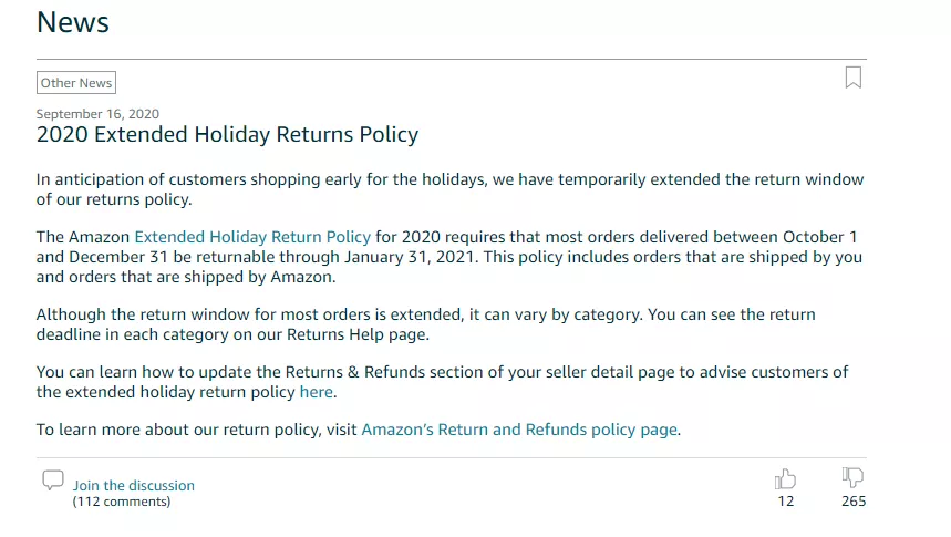 而亚马逊此前曾经因为这个缘故,为了吸引更多消费者在大促日冲动消费,延长了大促后可以退货的时限,在去年黑五网一时候,甚至延后了一个月之久,大促订单在一个月内都可以退货退款。当时就有不少卖家因为这个改动大喷亚马逊,为了讨好消费者不要底线。