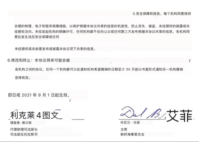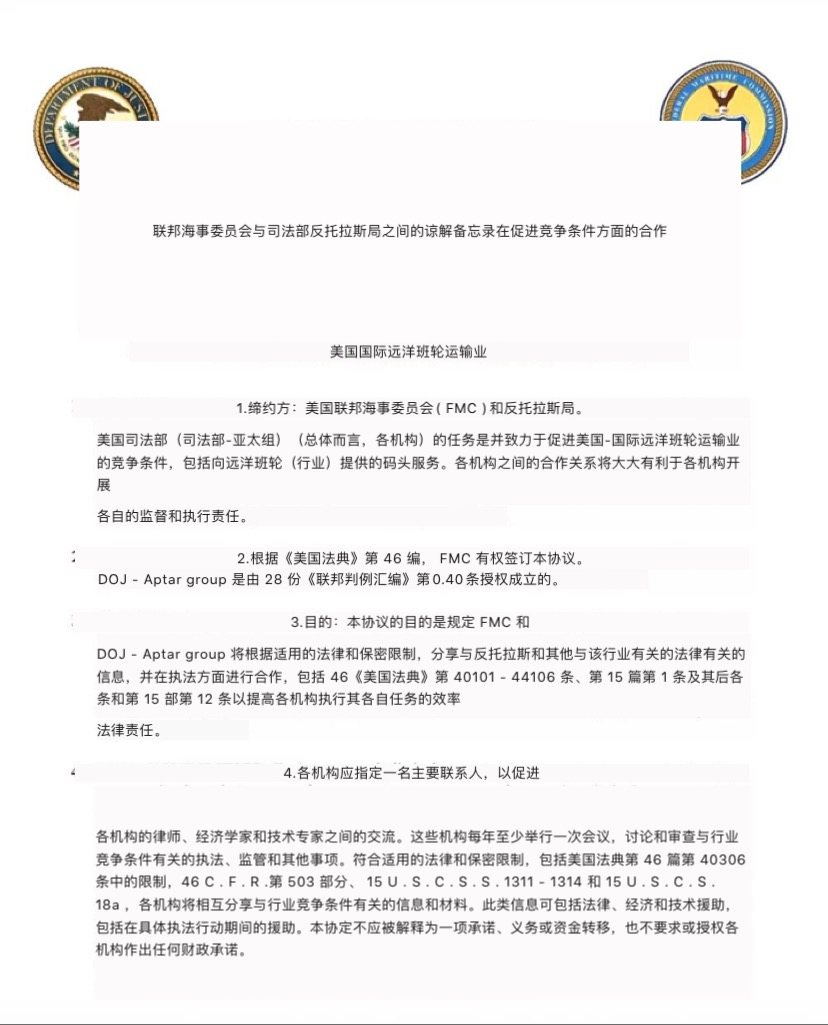 周一的时候美国联邦海事委员会和司法部反垄断部门签署了一份谅解备忘录,