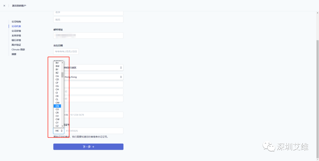 重点来了,现在发现电话跟身份证号码这栏,前面可以选择国家的都选择【CN】,其他信息按照自己的真实资料填写即可。