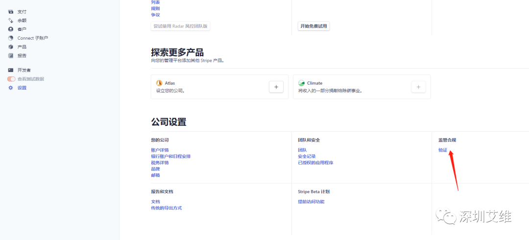 注意:香港账户一定要港币收款账号,不能是美元收款账号,否则客户付款的时候你又没注意到Stripe的邮件提醒的话,这个钱将会被退回!!做完以上步骤记得回到首页,进入【设置】--【监管合规】--【验证】,进入验证提交身份证信息。