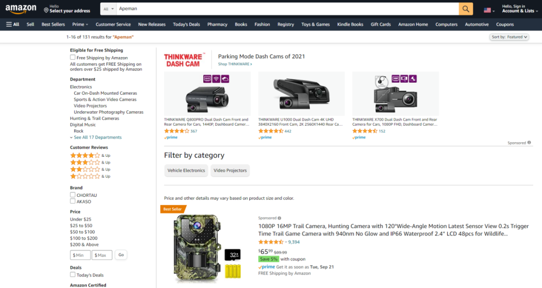 近日,有外国媒体爆料称,亚马逊大卖Apeman在经历了大规模的下架、封店以后,迅速更换了新的名字重新出现在亚马逊平台进行销售,且在将近六周的时间里都未曾被亚马逊官方发现。