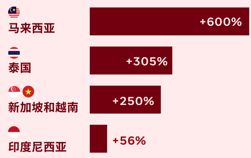 根据 Criteo 平台数据,东南亚地区 2020 年 11 月 11 日的销售额与 10 月 1 日至 28 日的均值相比,涨幅巨大,其中马来西亚最突出,增长了 600%。