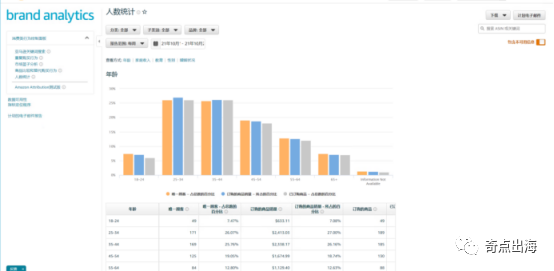 如果我们预上架的产品是一款已经在售的产品的横向开发产品,他们的目标受众是一致的,我们完全可以使用品牌分析中的人数统计工具,从年龄、家庭收入、教育、性别、婚姻状况等方面的数据来得出目标受众的人群画像。