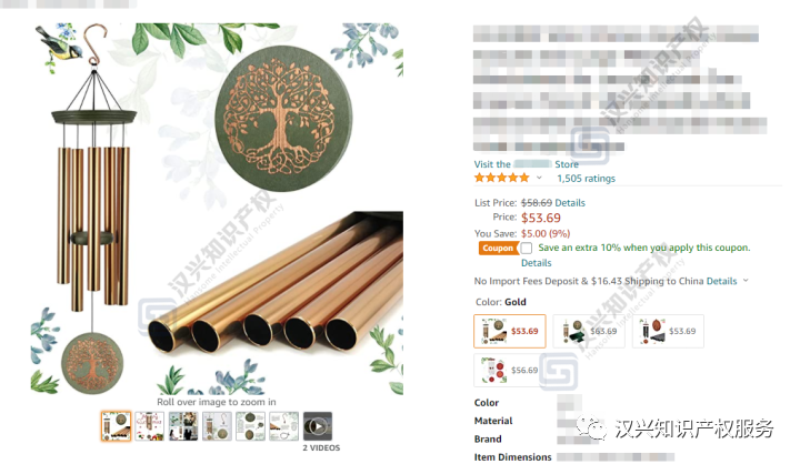 下面这款风铃,目前在亚马逊美国站评分4.8,现有留评数1,505,售价为为53.69美金: