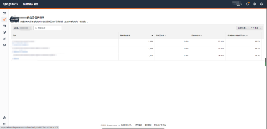 就在广告管理的模块中,点击左侧列表的品牌指标。