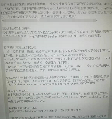 不过最近有卖家说他收到了亚马逊的业绩通知,如下图,亚马逊将降低受影响商品在搜索结果和促销渠道中的曝光率,也就是所谓的限流。