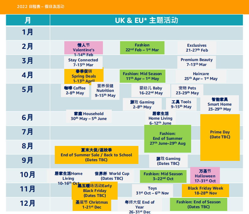 1/2022亚马逊欧洲站营销日历出炉