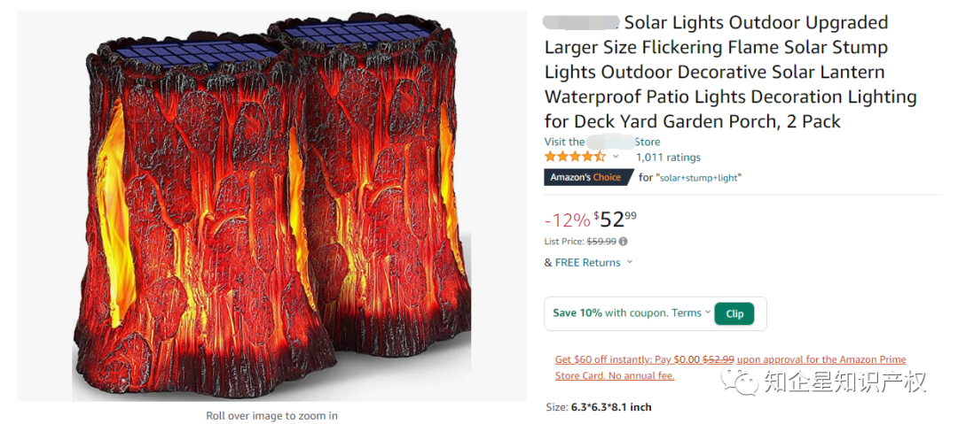 今天在浏览亚马逊的时候,看到一款庭院用的,太阳能树桩灯,它是美亚站的Amazon'sChoicefor "solar+stump+light" ,售价52.99美金,留评1011颗星。