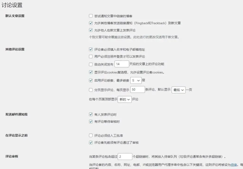 设置WordPress讨论