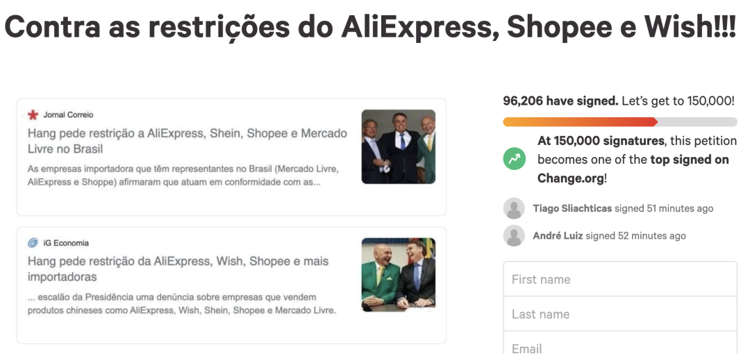 一位名叫布鲁诺·卡洛斯·桑托斯的用户在 Change 网站上创建一个请愿书,旨在反对可能实行的加税政策,目前已获近 10 万人签名支持。