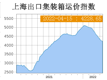 4月15日,上海航运交易所发布的上海出口集装箱综合运价指数(SCFI)报收于4228.65点出现小幅下跌,与上期4263.66点相比下跌35.01点。