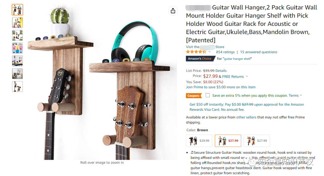 今天在浏览亚马逊的时候,看到一款壁挂式吉他架,它是美亚站的Amazon'sChoice,售价27.99美金,留评875颗星。