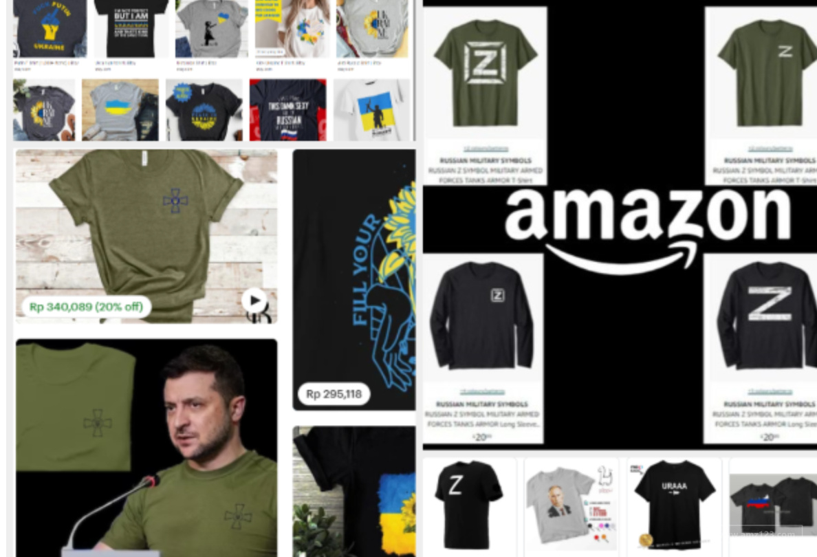 根据Alinea.id的搜索,与俄乌战争相关设计的服装产品也在Lazada、Shopee和Tokopedia平台上热卖。带有"Z"和"Ura"符号的T恤在Lazada的许多在线商店以29,000卢比到85,.............