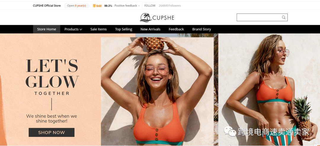 中国泳装品牌Cupshe成为了美国当下最受欢迎的泳装品牌之一,在Instagram和Facebook上拥有超过105万的粉丝,其DTC网站每月访问量达100万次,在全球最大电商亚马逊上拿下了97%的高分好评。