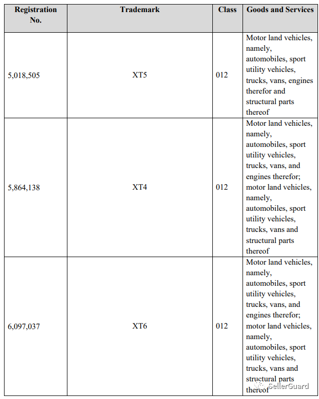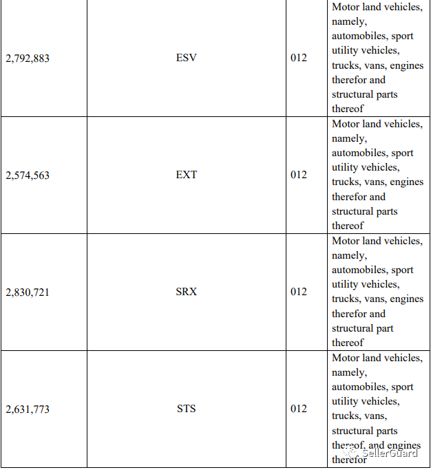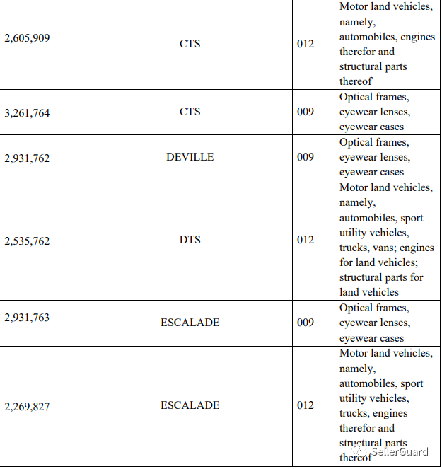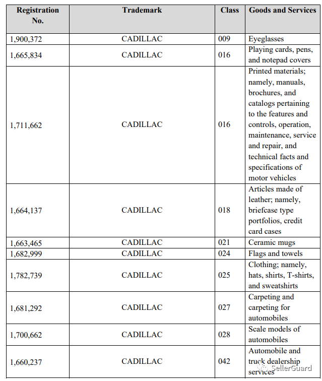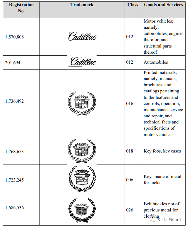 本案主要是商标维权,Cadillac的注册商标比较多,但大致分为带品牌名字的商标,历史是各款车型的名字商标,以及LOGO演化图案商标: