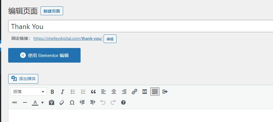 然后点击"使用Elementor编辑"开始设计你的感谢页面。设计完成之后,点击发布就可以了。