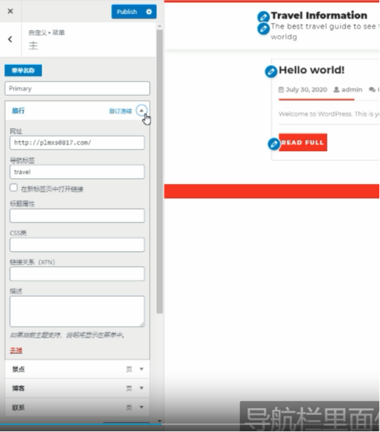 这是点击导航之后跳转的网址,你可以添加文章的网址,也可以添加网站的网址