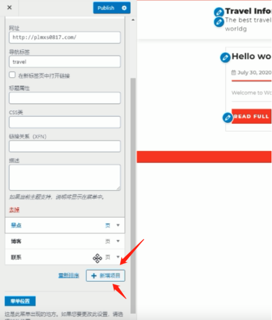 如果要添加子导航的话,点击新增项目