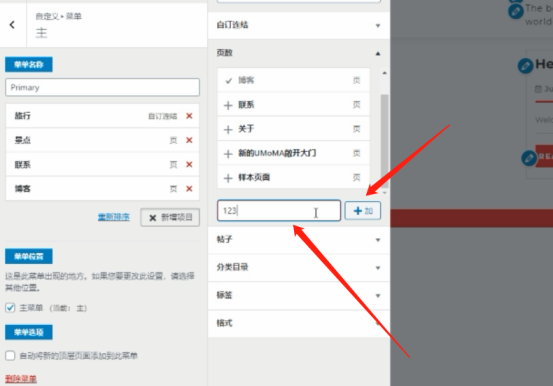 在右边新增页面填上你子导航的名字,点击+加