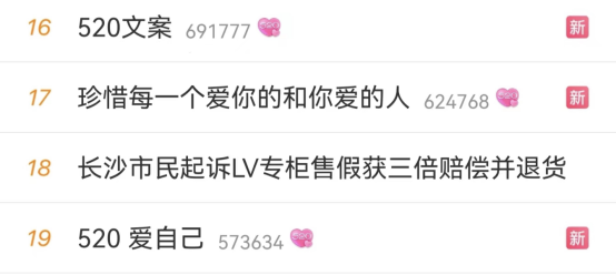 在520这个浪漫的日子,奢侈品牌LV有点难堪。"长沙市民起诉LV专柜售假获三倍赔偿并退货"冲上热搜榜!