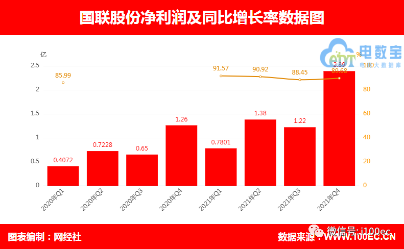 4月11日,国联股份发布2021年年度报告,报告期公司实现营收372.3亿元,同比增长116.98%;归母净利润5.78亿元,同比增长89.97%;扣非净利润5.31亿元,同比增长98.62%;基本每股收益1.68元。