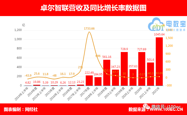 卓尔智联:营收1045.64亿元 同比增长43.69%