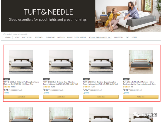 使用deals带动整个店铺的销量,让客户直接了当的在购物中看见你店铺所做的一些促销折扣。 从而在旺季之前更好的帮助买家扫除下单的障碍,即使是与节日无紧密联系的产品,也可以借助相关的促销页面提升自己的流量。在这方面业内大佬旗下的几个品牌绝对都是我们学习的好榜样,下面为大家分享两个截图,其他品牌大家可以自行搜索一下: