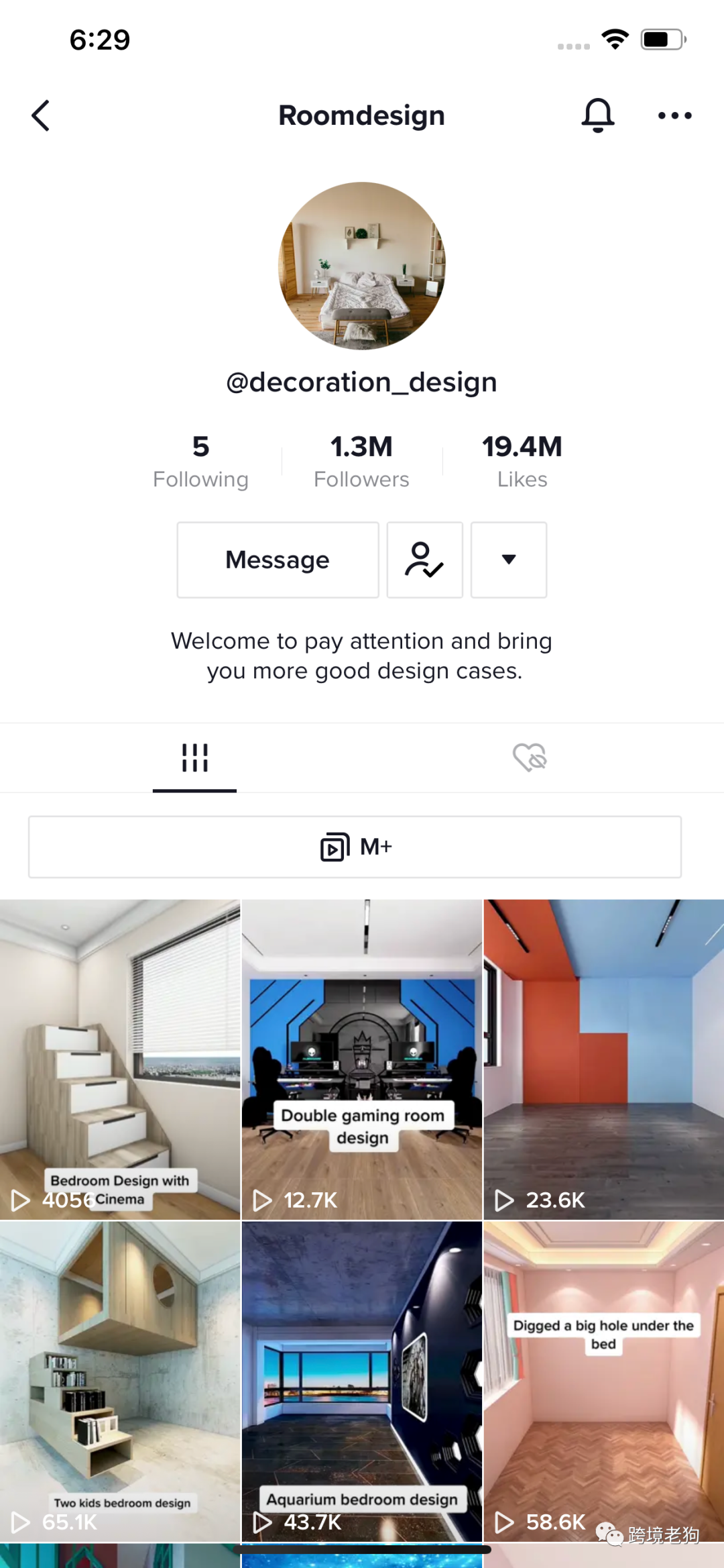大家可以看到,这是一个做室内设计的号,专注分享中小型公寓的内部设计,视频风格大概就是这样