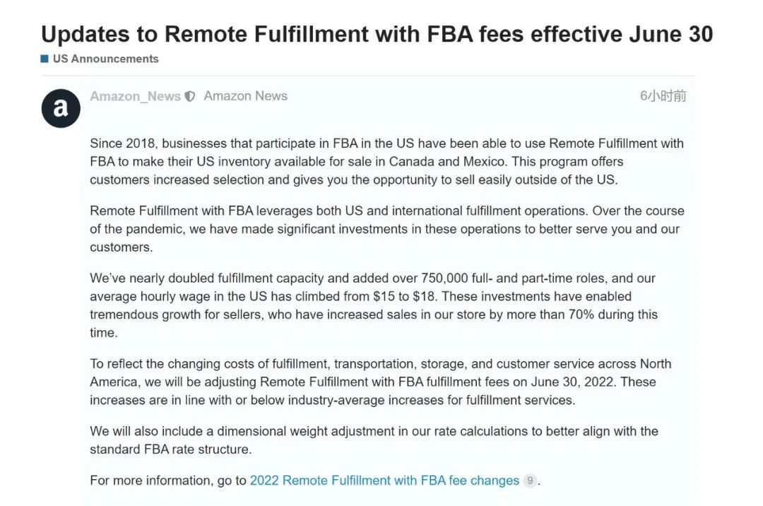 这两天亚马逊发了公告,将从6月30日起上涨亚马逊物流远程配送费用!