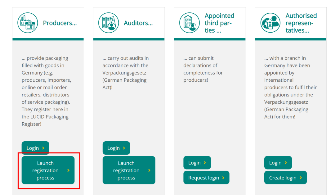 进入德国包装品中央登记处LUCID的官方网站登记注册
