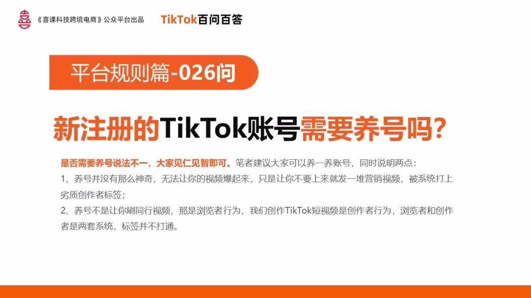 是否需要养号说法不一,大家见仁见智即可。笔者建议大家可以养一养账号,同时说明两点:1、养号并没有那么神奇,无法让你的视频爆起来,只是让你不要上来就发一堆营销视频,被系统打上劣质创作者标签;2、养号不是让你刷同行视频,那是浏览者行为,我们创作TikTok短视频是创作者行为,浏览者和创作者是两套系统,标签并不打通。