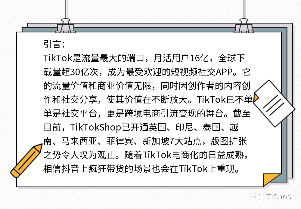 TiChoo数据为电商人整理了一份2022上半年最新TikTok Shop跨境电商数据分析报告,包含: