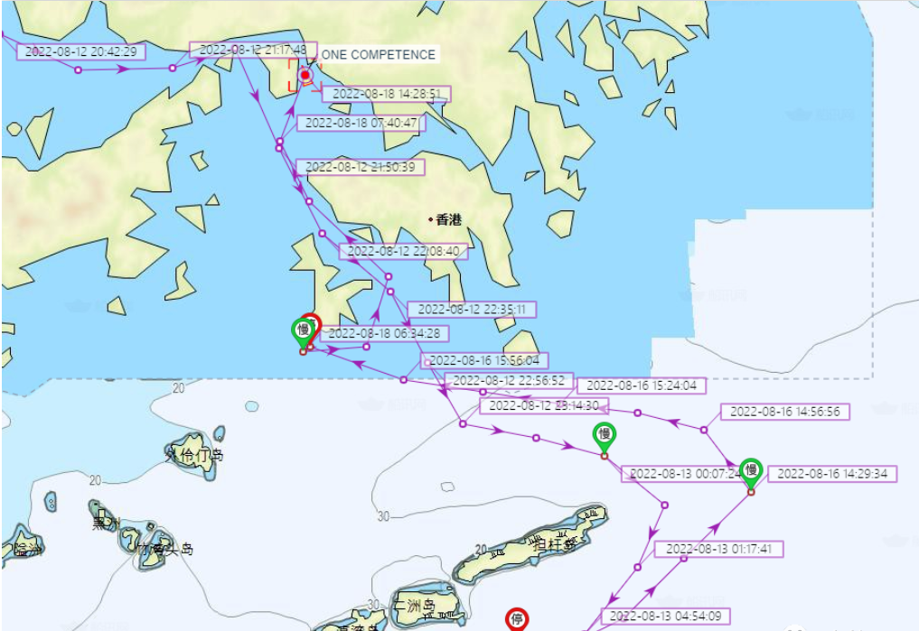 根据ONE官网最新修正的船期数据显示,8月12号离开深圳蛇口港的ONE COMPETENCE轮,预计抵达新加坡港的时间将要到10天后的8月22日!