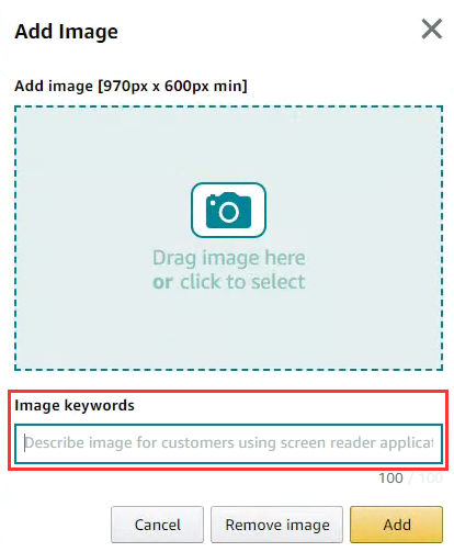 这里的图片关键词是个必填项,它有一点隐藏关键词的意思,但是主要功能不在于此,而是在于帮助有视觉障碍的买家更好地了解我们的产品。