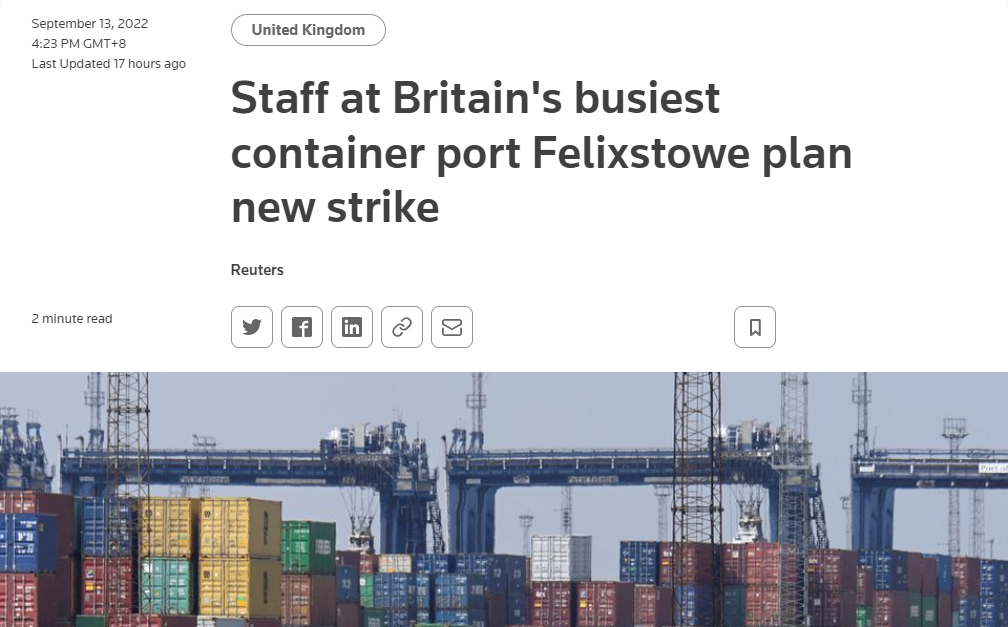 加剧动荡据 Unite 称,大约 48% 的运入英国的集装箱通过费利克斯托港运输,使其成为.............