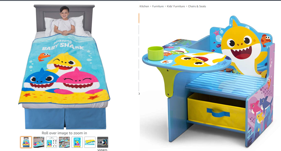 以这个产品图案为例子,就是小孩这部分人群对于这个卡通鲨鱼的图案的喜好转化是远远超过其他图案的,所以我们要做的就是把这个图案应用到,我们产品里面跟小孩的相关的产品里面去测试相关的转化率,这只是一个非常.............
