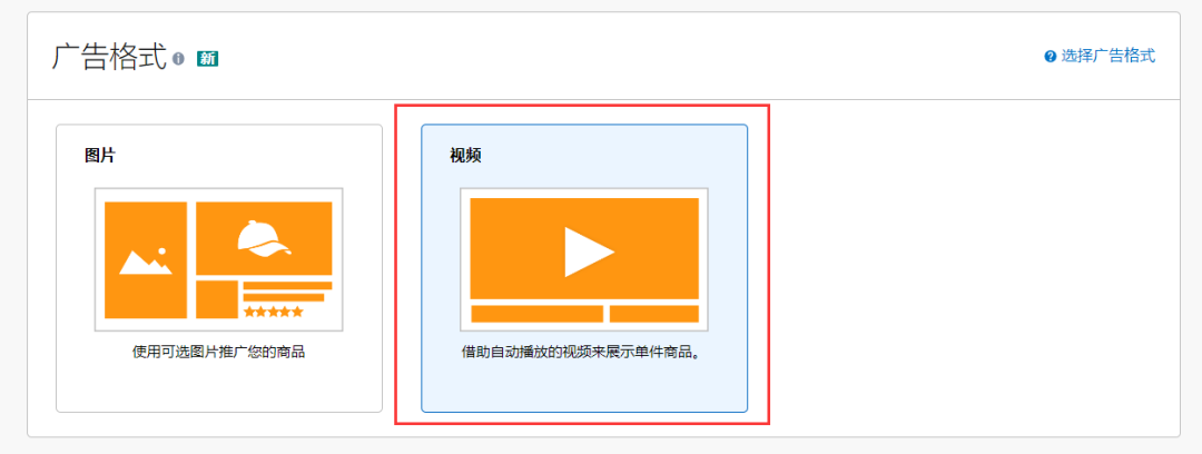 展示型推广现在多了一个视频格式,而图片格式就是之前的自定义图片功能。