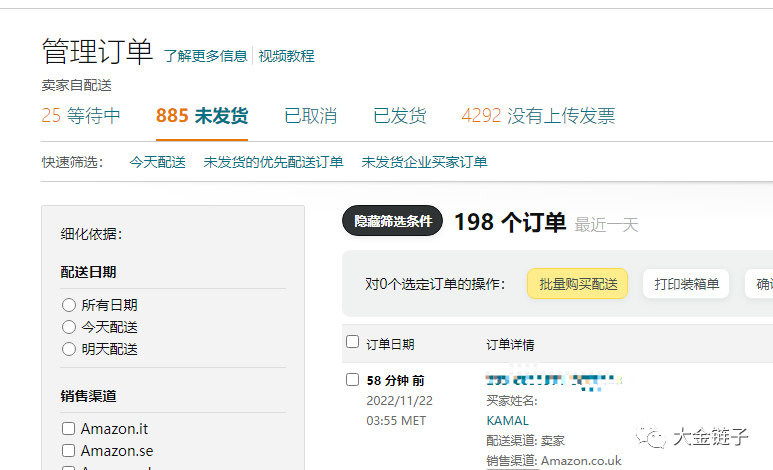 这个是北美站自发货FBM最近一天的订单截图。