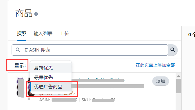 所以,就根据这个提示,直接点击"添加"按钮即可,就可以投放系统推荐的ASIN。